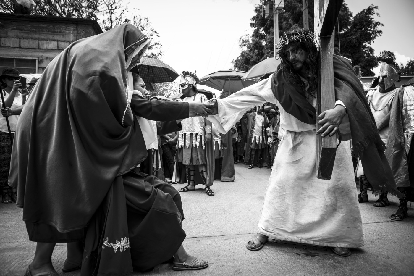 En esta galería fotográfica del archivo de Mario Arturo Martínez, las imágenes capturan algunos de los momentos más intensos de esta tradición: rostros, gestos y escenas que reflejan la devoción y la carga simbólica de la Pasión representada por la comunidad.